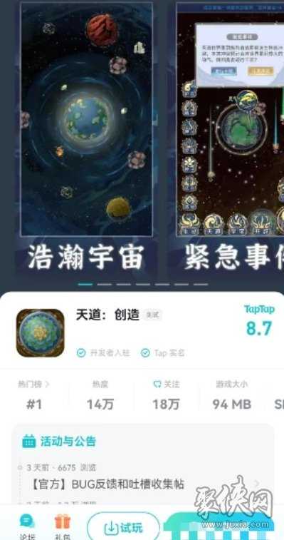 1、首先玩家需要先登录【TAPTAP】应用,然后搜索找到游戏【天道创造】