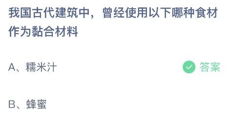 问题一、我国古代建筑中,曾经使用以下哪种食材作为黏合材料?