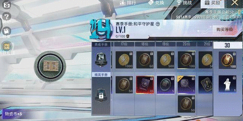 4、购买赛季手册,完成任务后,可以领取物资币。手册等级达到100级后还可以点击手册兑换页面,参加手册寻宝行动,可以继续获得物资币。