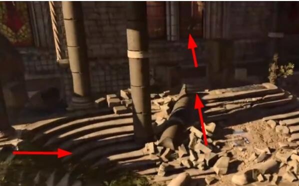 3、玩家需要沿着下图箭头的方向从窗户爬出去。