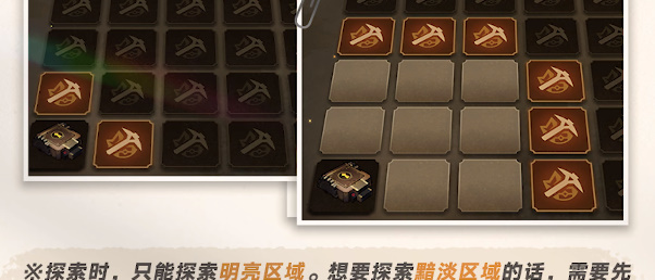 2、搜索时只能探索明亮区域。想要探索淡区域的话,需要先探索附近的其他区域;