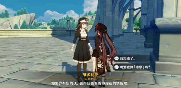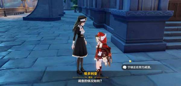 1、前往蒙德教堂,找到维多利亚修女对话。