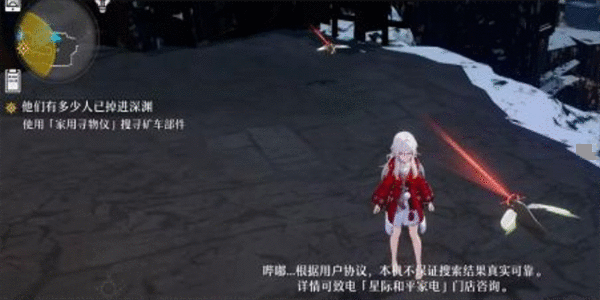 我们可以购买道具查查,进入大矿山地图我们放置查查,跟着光线指向的位置走一定距离后我们再次放置查查如果位置很远的话会出现红光然后跟着光线;