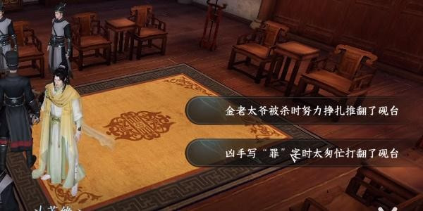 8、我们调查金老太爷的尸体,然后选择第一个选项,继续调查砚台我们选择第二个选项