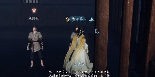 3、我们根据任务的引导来到刑部地牢中找到王腾达,我们需要点击进行对话,对话结束之后我们在门口和狱卒李朝阳进行对话;
