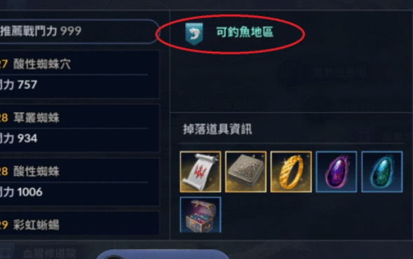 ▲在地图上会显示可钓鱼区域
