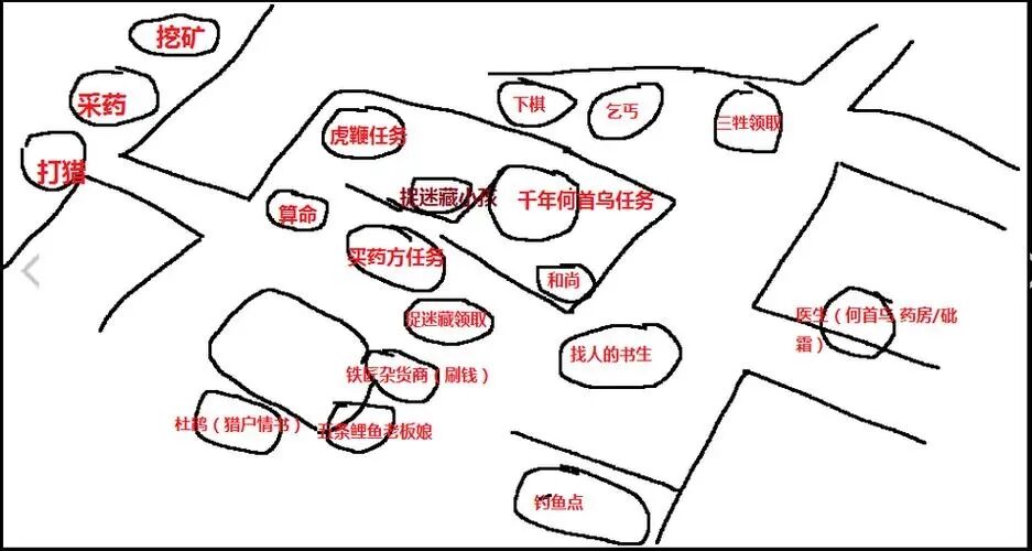 前往小摊吃饭,与摊主对话之后,会接到寻找鲤鱼任务,可以先不急着离开,点击食客还可以再接一个任务,并且这两个任务还是顺路的。在前往途中有很多小孩子,顺便寻找一个,会触发捉迷藏游戏。在后山有一个山洞,玩家需要去那里打水,可以开出三个箱子以及美酒,回到村子与渔夫交流之后存档,再读档就可以开始钓鱼了,在鱼上钩的一瞬间快速点开鱼竿,这个小技巧玩家一般都知道。渔夫会给玩家十条蚯蚓,全部使用完之后,可以钓到至少五条鲤鱼以及一条草鱼,寻找摊主与食客提交任务。