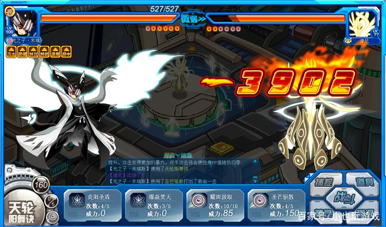 小编这个时候偷懒了,换了一只别的精灵,伤害比米瑞斯高了1000多点,不过依旧是老路子,圣光气用技能顶,其他时间直接大招。等谱尼血量估摸差不多了,直接轰杀完事!