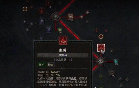 血雾:这是保命神技,能够获得一段时间的免疫效果并对附近敌人进行吸血,对生存和续航都有增幅,同样需要加五点。