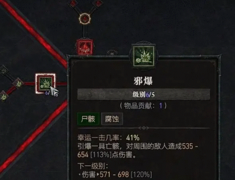 邪爆:引爆亡灵造成伤害,基础伤害和伤害加成都比较高,而且召唤的亡灵数量越多,它的伤害上限也会越高,作为一个爆发 的技能,建议把它也加五点。