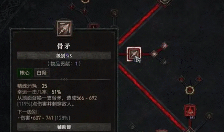 骨矛:这个建议直接加五点,因为它是一个基础加成很高的主动伤害技能,并且一段刺击敌人后还能分散成碎片打出二次伤害。