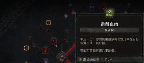 凿削血肉:这个是被动效果,攻击敌人有12%几率召唤亡灵,打boss时召唤几率翻倍,建议直接加三点,这样可以让你在面对boss时用亡灵去吸收伤害。