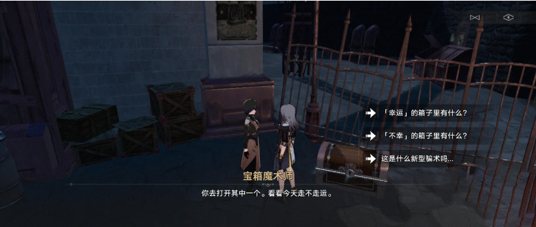 2、她让玩家猜箱子,一个幸运,一个不幸,此时需要挑选一个箱子。