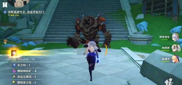 21、调查完成之后就会开始战斗,打死小宝两次后派蒙提示攻击水墙;