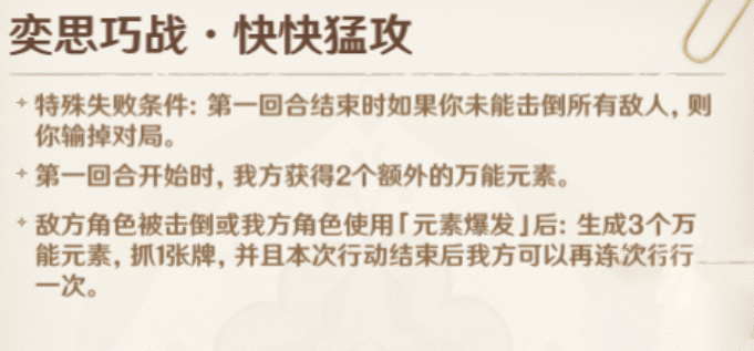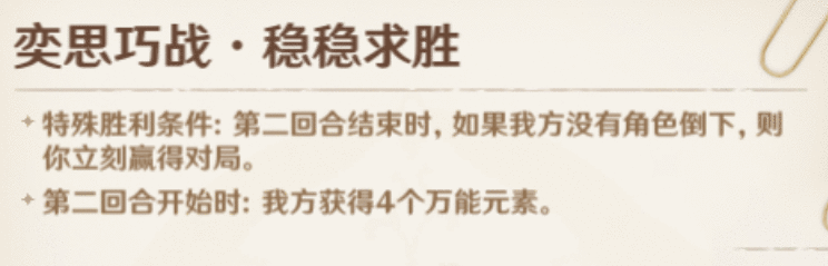第三关整体不牺牲2来回就获胜,用钟离/行秋这种人物角色托着就可以了,行秋消身上的原素,钟离套盾。 但是第二回合送4个摇骰子要我想要甘雨把正对面全杀掉了更快乐点