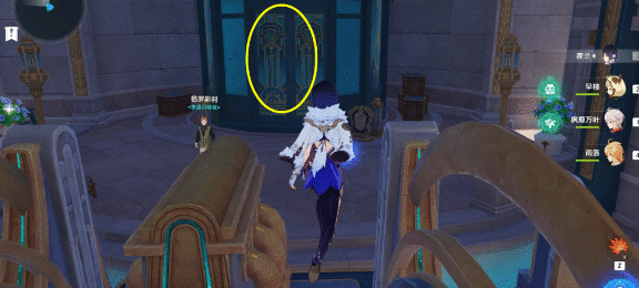 4、开启完第一处神像后,往身后看,能看到一艘船,和船长对话就可以乘坐观景船抵达枫丹主城了;