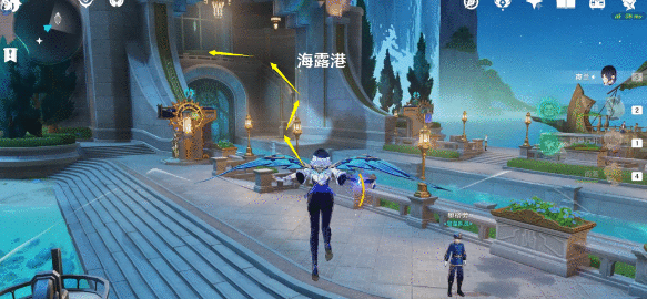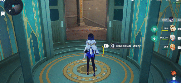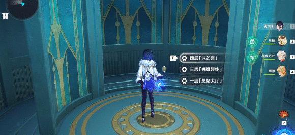 5、抵达主城后,旁边就会有水道引导员,乘坐电梯去到四层,往前面走就是主城神像了;