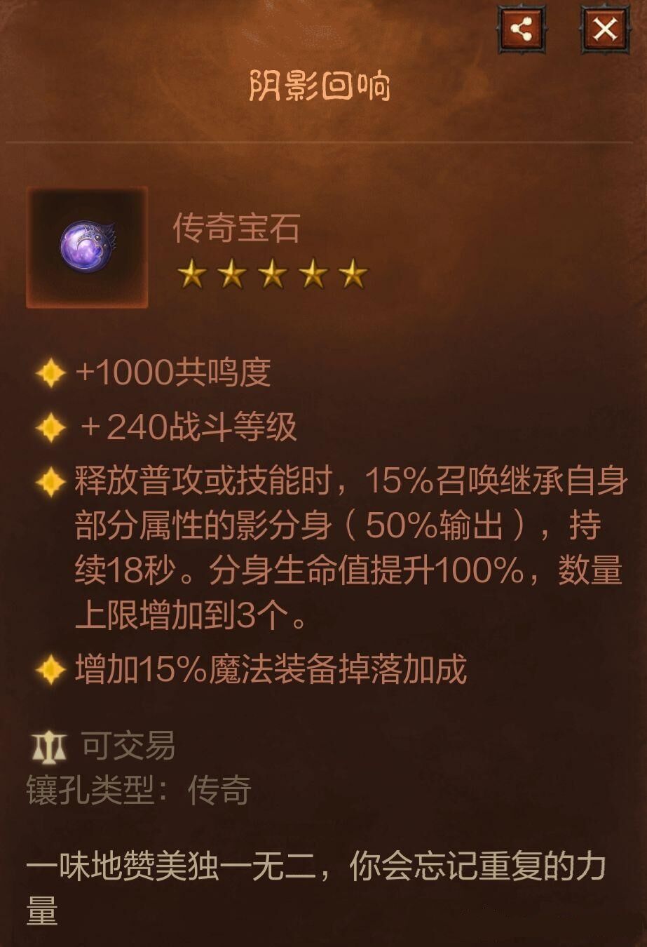 如果白嫖出了阴影回响可以考虑把猎神换掉,因为阴影回响所召唤的分身它是属于召唤物可以吃到BUFF,它的伤害比本体可能还要高。