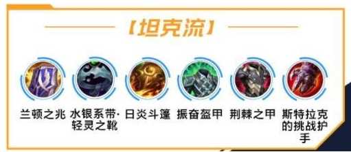 坦克流出装:兰顿之兆+水银系带·轻灵之靴+日炎斗篷+振奋盔甲+荆棘之甲+斯特拉克的挑战护手。