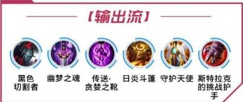 输出流出装:黑色收割者+幽梦之魂+传送·贪婪之靴+日炎斗篷+守护天使+斯特拉克的挑战护手。