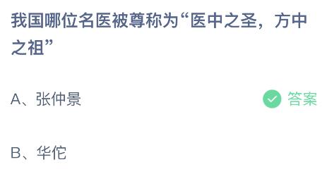 问题一、我国哪位名医被尊称为“医中之圣,方中之祖”?