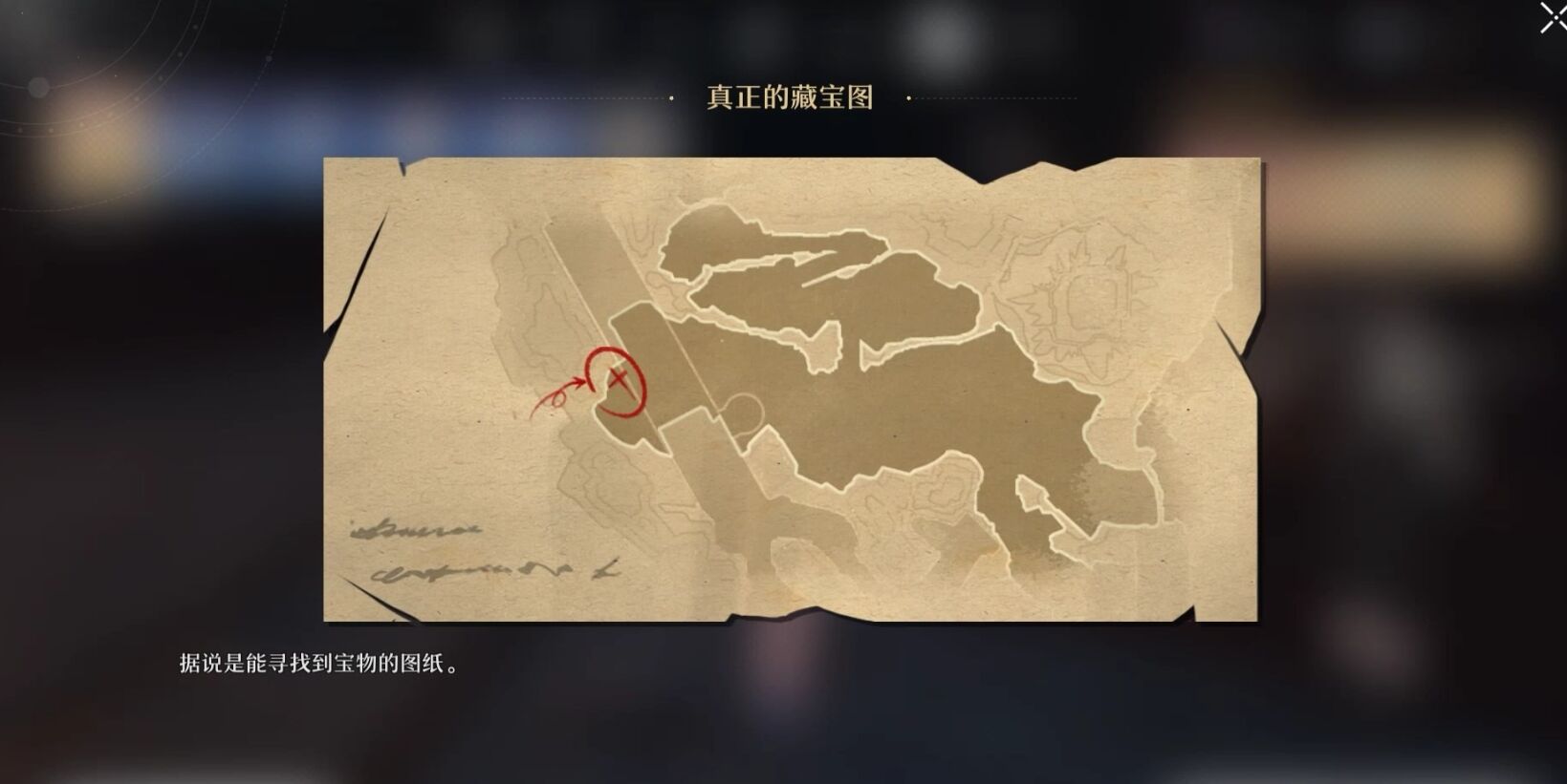 根据藏宝图标记位置,前往下图即可找到第一个宝藏,这里是假的宝藏。