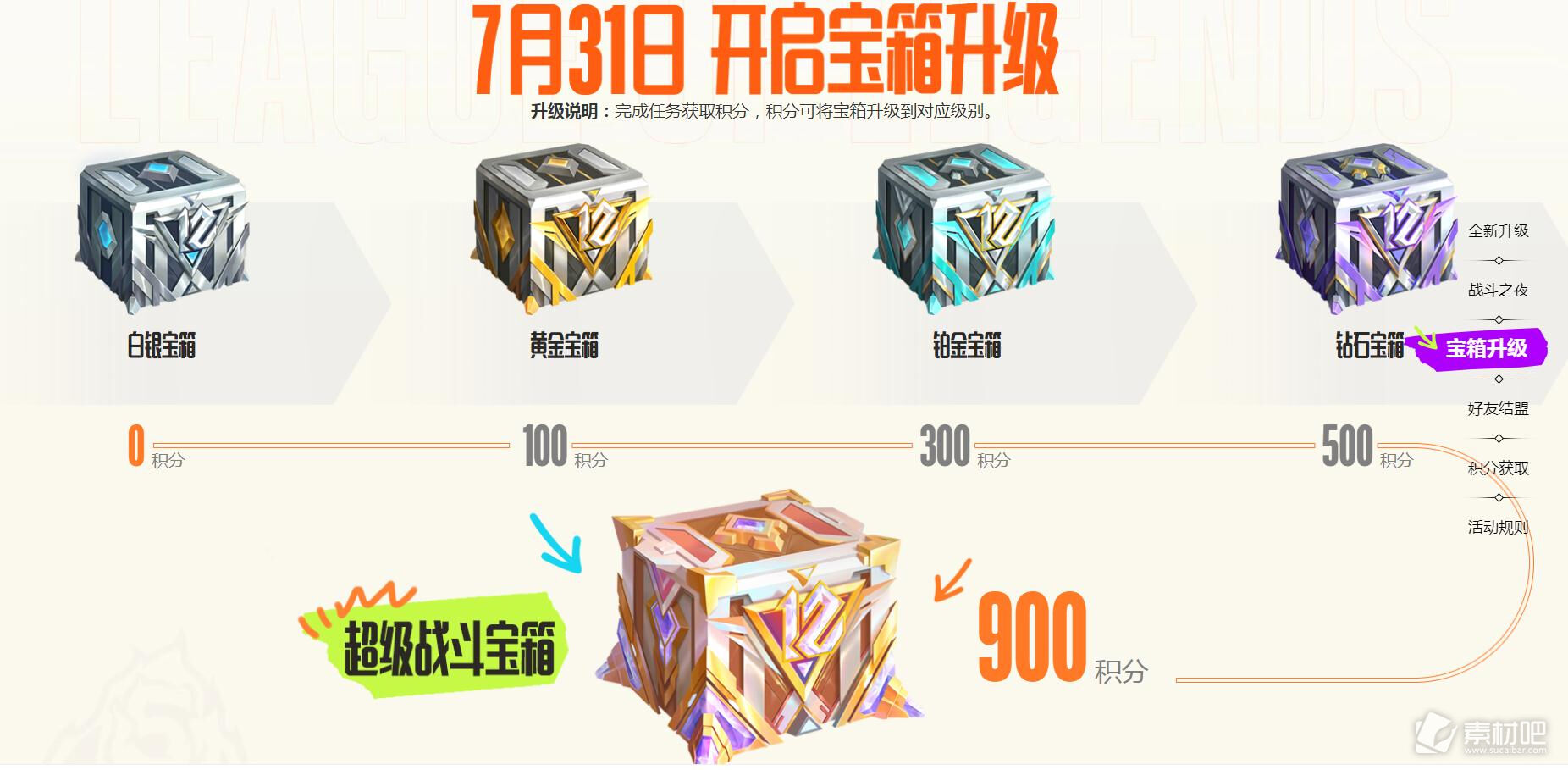 只要获得对应积分,就能升级宝箱并提升宝箱中奖励的随机皮肤的品质。