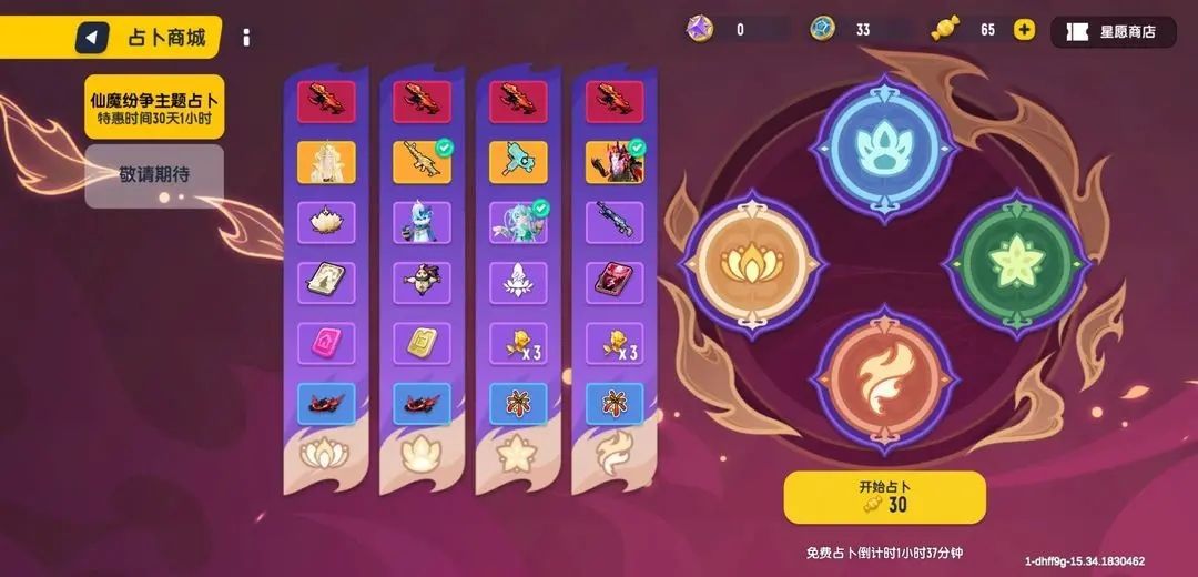 2、我的技巧为抽三就领,此占卜为7格比平常要多,那么下面的概率就会有所增大,因此我们可以抽到三就领币,不要贪着往上,在抽的时候也可能有奇迹,那么就是在抽到二阶时会出暴击可以拿到四阶奖励,四阶奖励能领就领(不亏的)抽到三阶直接领币。