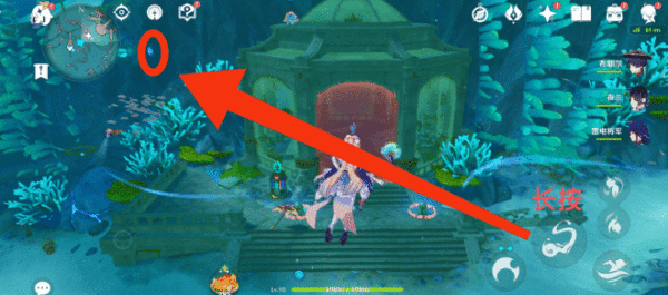 然后去到左侧红圈蓝水晶位置,长按普攻瞄准蓝水晶使其变色
