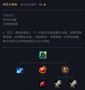 神圣分离者的被动,是释放技能增加额外伤害,而且每出一件传说装备就增加5%的护甲穿透。