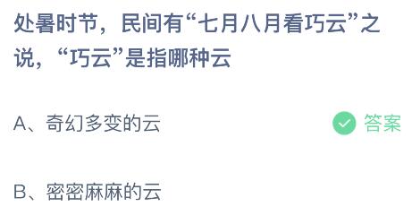 问题一、处暑时节,民间有“七月八月看巧云”之说,“巧云”是指哪种云?