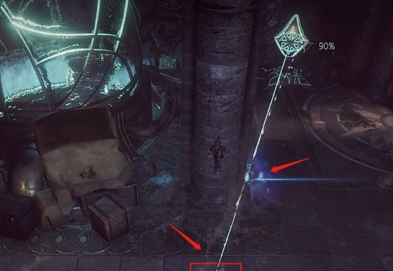 最后两个炮台玩家躲在柱子和装置之间的位置就能完美避开,具体位置见下图。