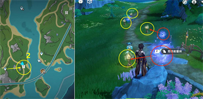 1.第一处位于【秋风山西侧】,将附近三个水球拾取后放置激活水圈,将水圈携带激活剩余两个水元素机关解密获取宝箱;