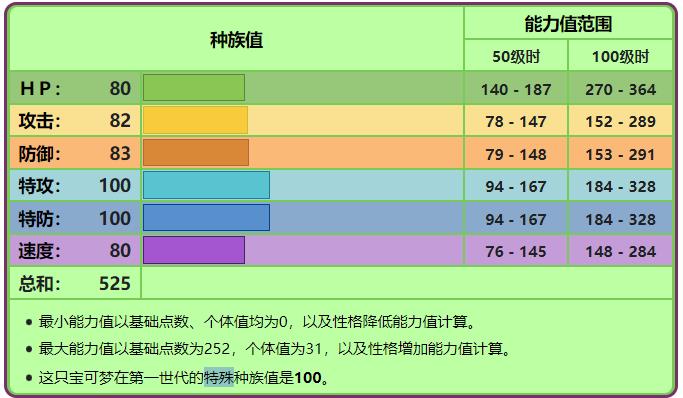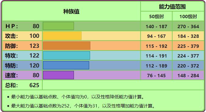 基础点数(努力值):速度255,物防128,特防127