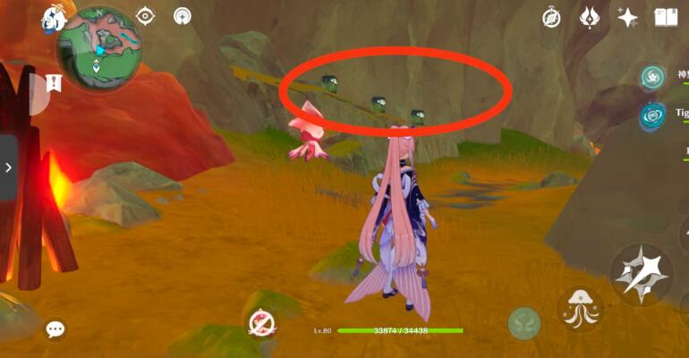 4、继续沿着岸边可以找到下一个装置,周围有荆棘,需要用火元素烧掉。