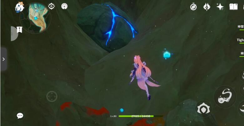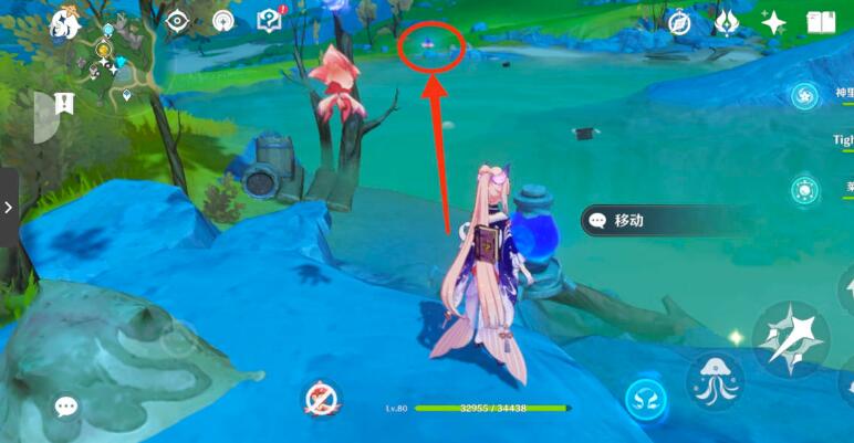6、机关点亮后可以传送到水下,到达水下可以看到一只异变重甲蟹,捕捉技能后可以打碎旁边的石头,里面有一个水神瞳。