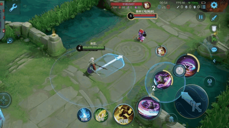 细节①:二技能位移的路径比实际范围要长一倍距离,如下动图展示,离二技能指示器多一倍距离,依旧可以造成伤害和减速。