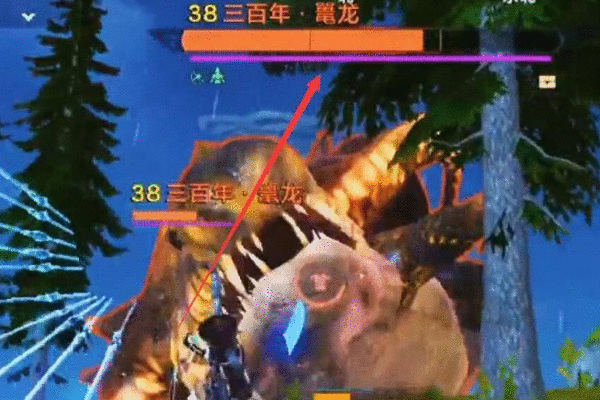 3、使用武器不断的消耗鼍龙的血量,但是记得躲避妖怪,如下图所示: