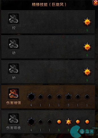 5、怒啸长天-----有条件的话攻速全部点上,没条件的话点到9级就可以了