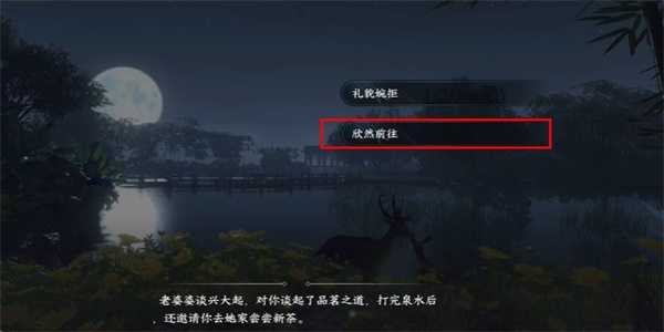3、接着NPC就会邀请我们前往她家去品茶,选择欣然前往即可,最后我们结束与NPC的对话之后,就可以完成任务。