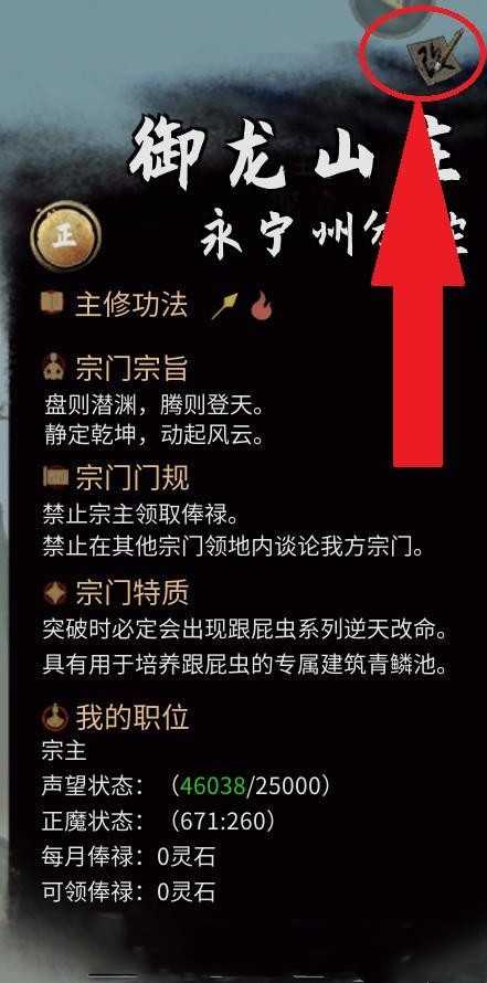 在游戏后期,我们要做的就是打下各个宗门,然后把弟子尽可能分配给“外务堂”,提高宗门名誉,然后一个州4个分舵+总舵开始刷红书!刷红书的期间自己想干嘛就干嘛了。