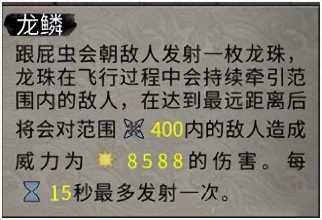 其中“龙麟”强烈建议在永宁州就选上!在前期一颗龙珠的伤害相当于玩家一次神通了,而且清小怪异常效率,十分的香。