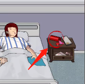 4、根据要求将【富豪】放置在左边,【老婆】放在病床上。
