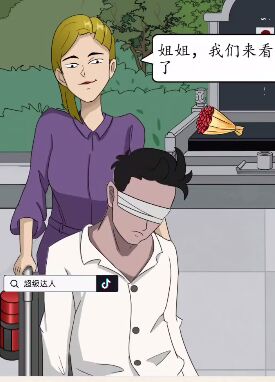 8、推轮椅的是【妹妹】 坐在轮椅上的是【富豪】。