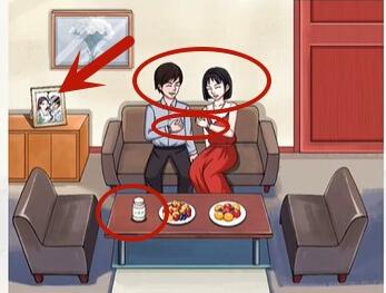 4、两人手表、表情、桌子上的止痛药、旁边撕碎的照片。
