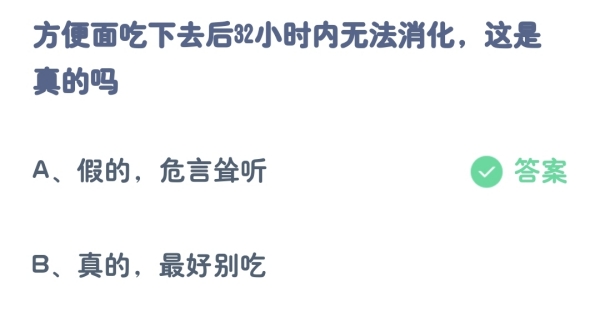 2、问题:方便面吃下去后32小时内无法消化这是真的吗