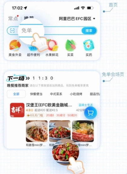1、打开饿了么APP搜索 免单,即可找到猜答案免单活动,进入会场并提前加购。