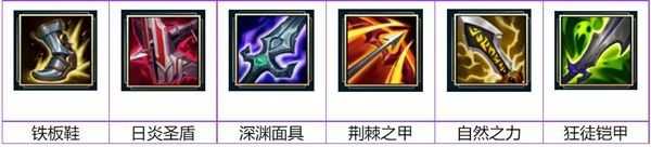铁板鞋+日炎圣盾+深渊面具+荆棘之甲+自然之力+狂徒铠甲