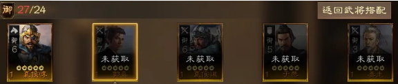 阵容一:夏侯惇+郭嘉+夏侯渊+于禁+娄圭。