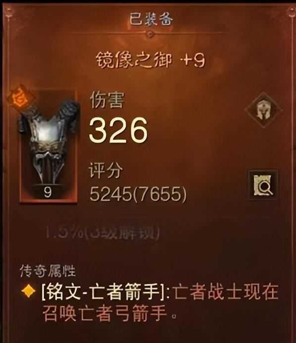 亡灵战士+镜像之御(头盔):这里选择的是弓箭手头盔,骷髅队长的输出比弓箭手差,而且队长只能召唤一只,享受不到牧羊人套装的暴击加持。